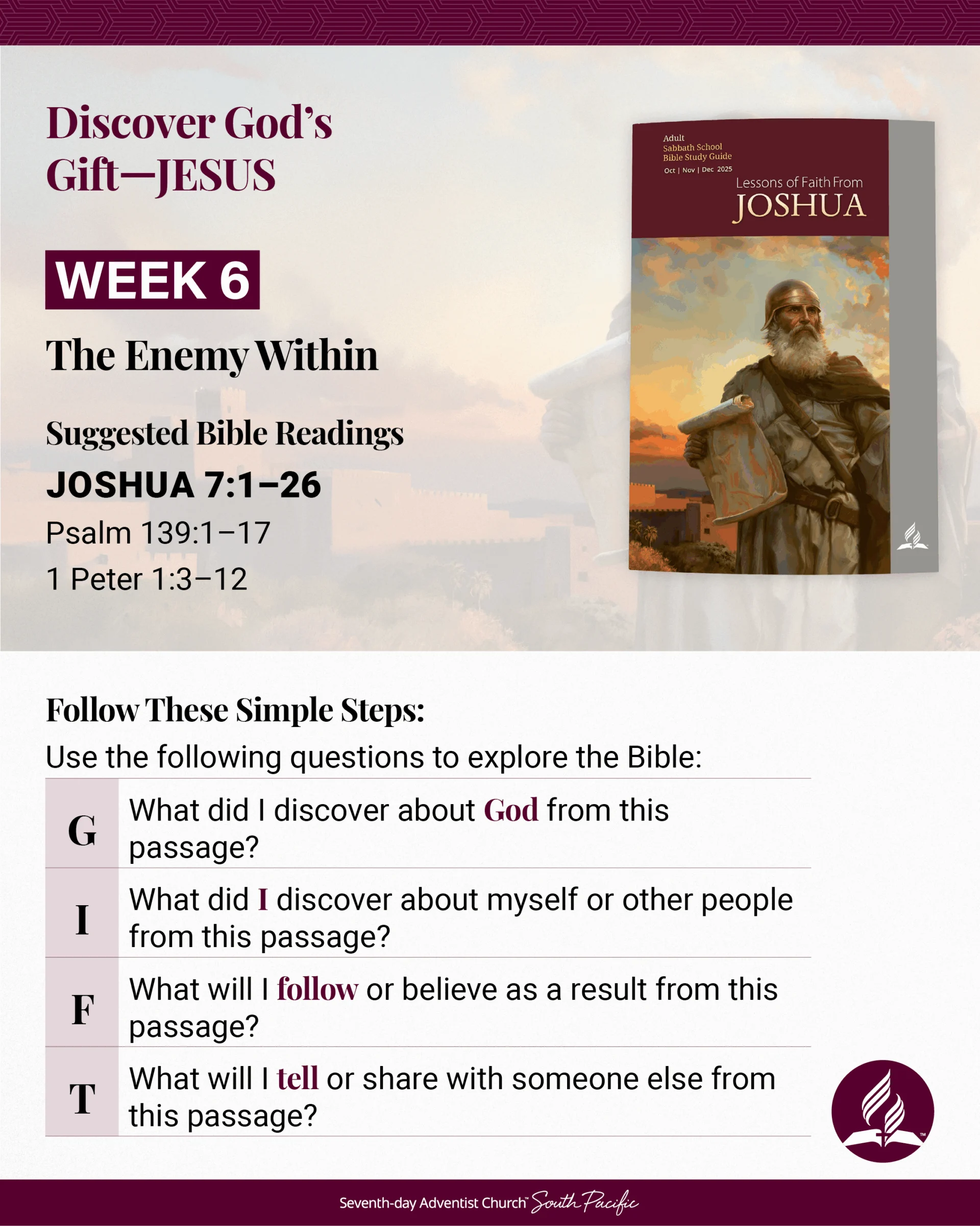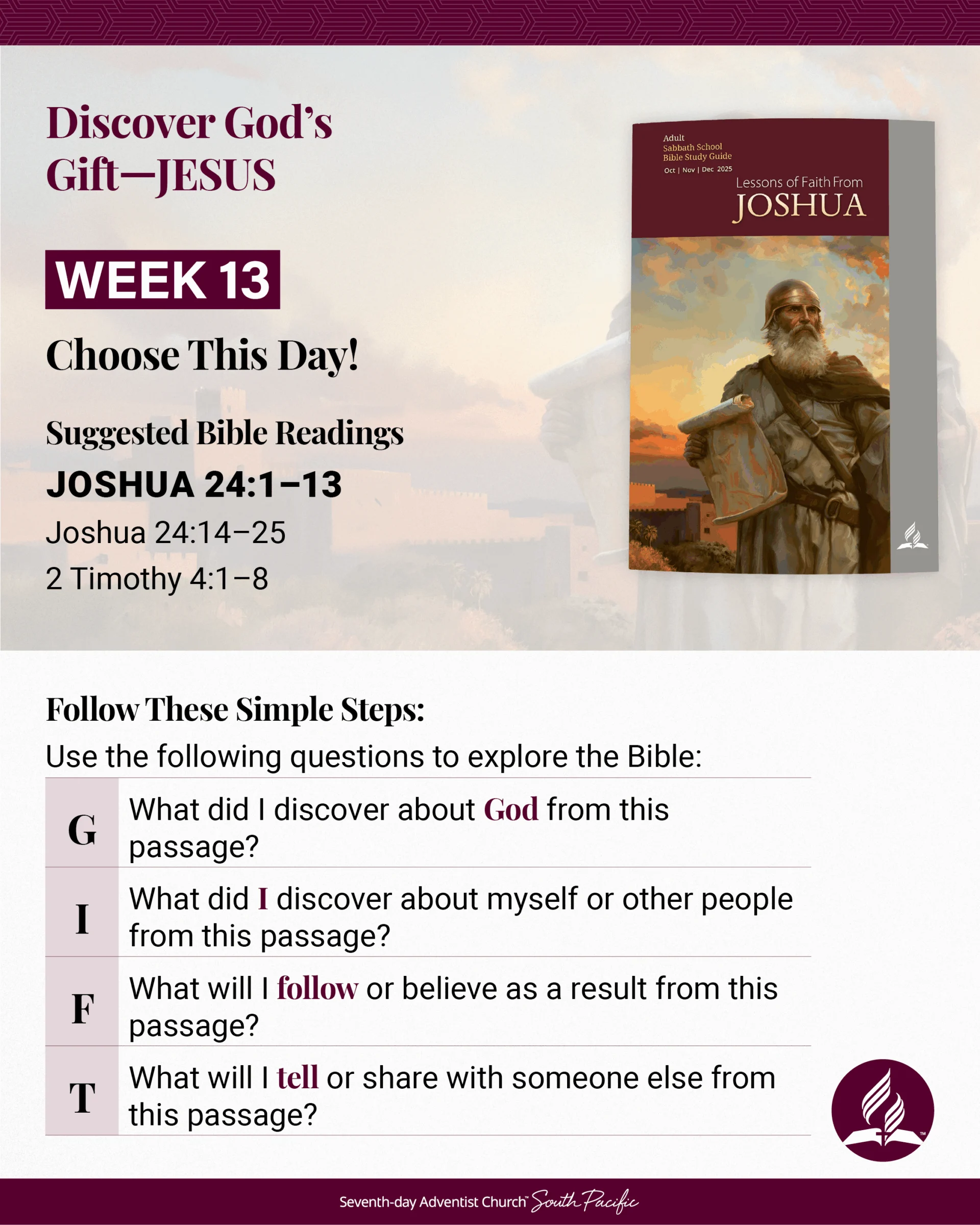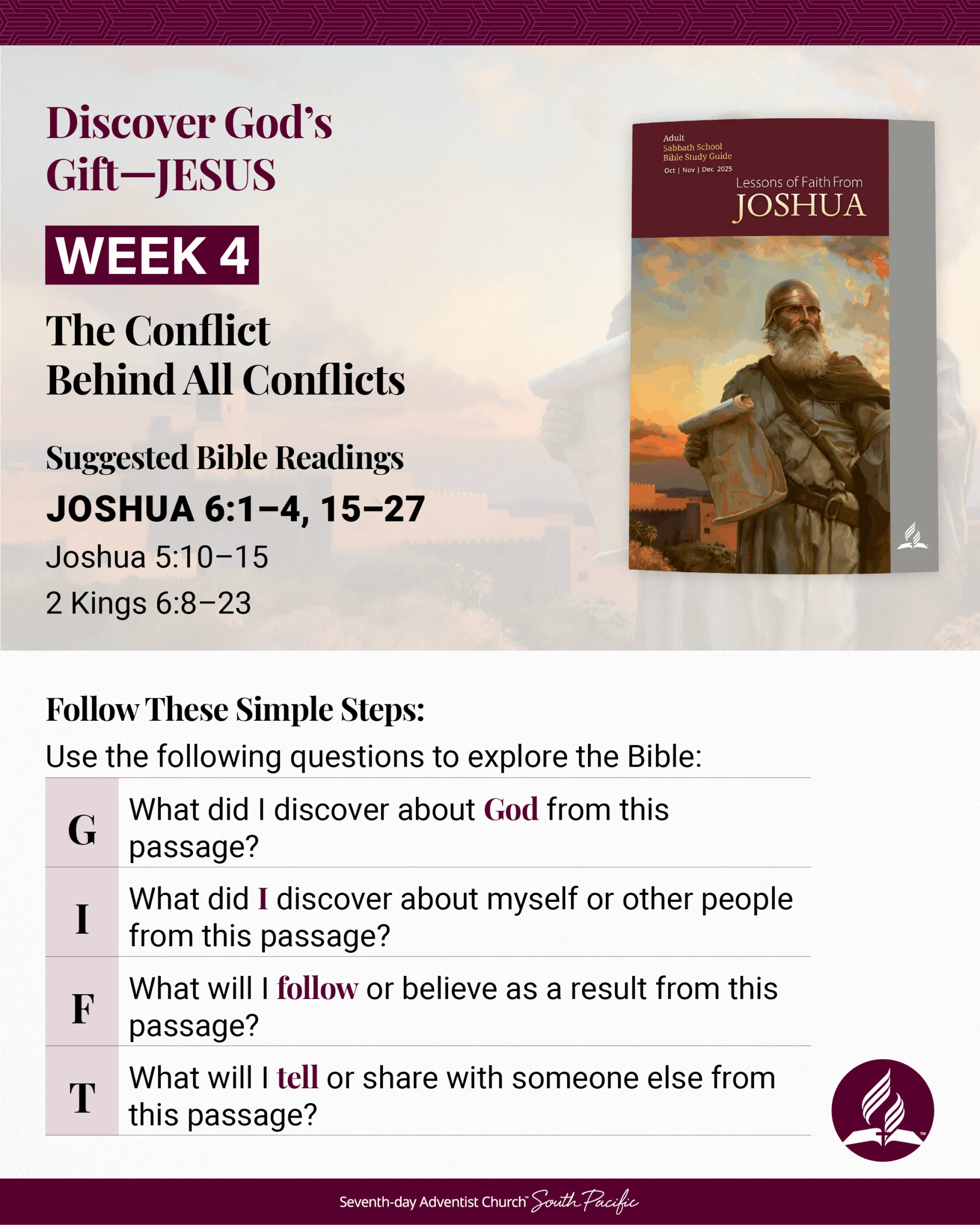 We will discover together in the book of Joshua, although written more than three millennia ago, the world in which we live today is not so different from that of Joshua’s in its spiritual challenges. We might face challenges of a different nature, but nonetheless there are challenges, especially spiritual ones, that threaten our security, our faith, and the fulfillment of the mission God has entrusted to His people. The example of Joshua will certainly inspire us to claim God’s promises concerning our time and to succeed through His power, as he did.